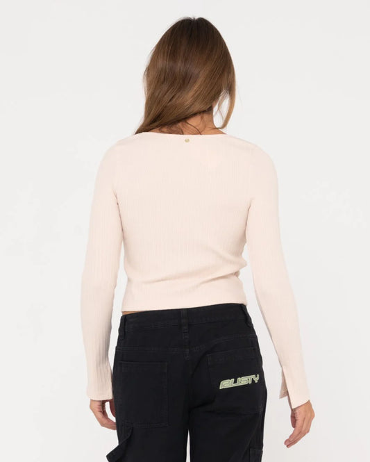 RUSTY SCARLETT RIBBED LONG SLEEVE TOP