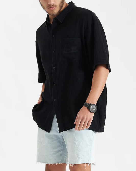 NENA & PASADENA DESTROYER OVERSIZED SHORT SLEEVE RESORT SHIRT