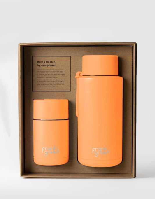 FRANK GREEN GIFT SET10oz REUSABLE CUP PUSH BUTTON + 34oz CERAMIC REUSABLE BOTTLE STRAW LID