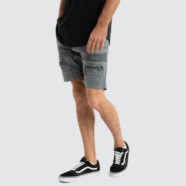 Upgrade your street style with the Nena and Pasadena Viper Denim Shorts in Iron Gate Grey. Featuring ribbed and ripped detailing, these shorts bring a modern edge for a sleek, versatile look. Pair them with a dual curved tee or muscle for a relaxed, effortlessly cool vibe.