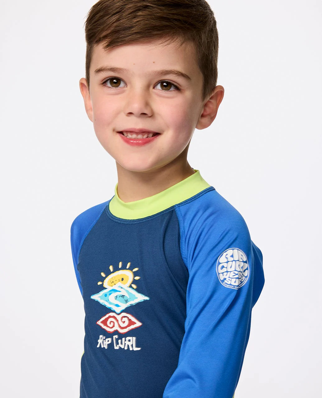 Protection and performance in one. This Long Sleeve Springsuit for boys features UPF 50+ sun protection, flatlock stitching, zip-back entry, and bold prints. Built to move and made to last.