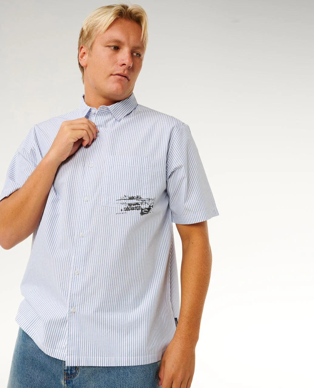 Yarn-dyed stripes and printed logo give the Inner Visions Short Sleeve Shirt its bold surf look, finished with a loose fit for everyday wear.