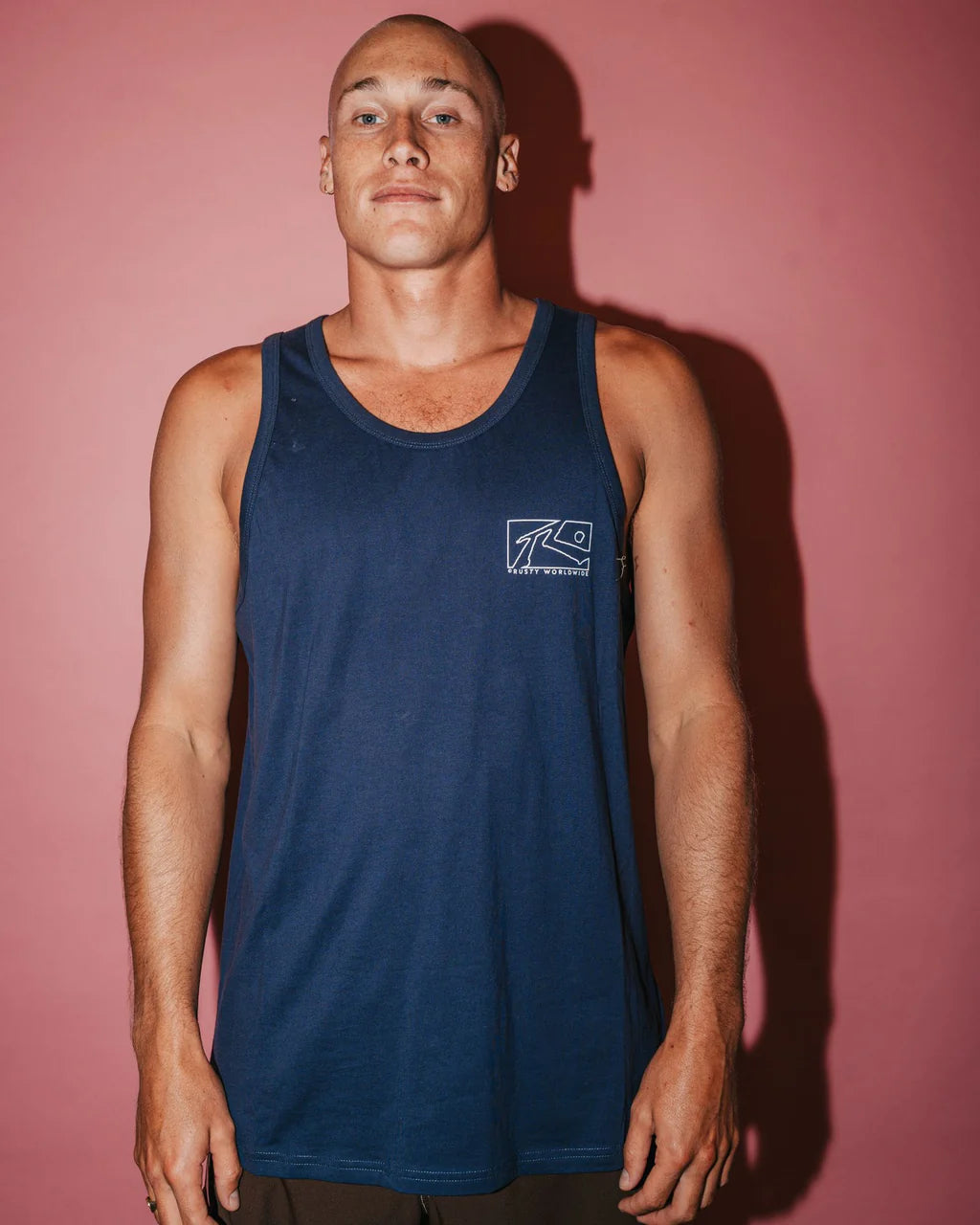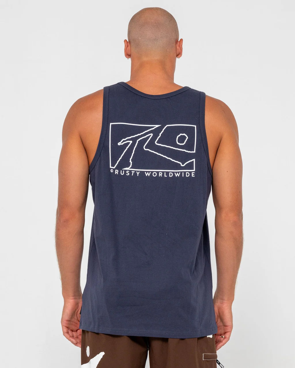 Standard Fit Tank With Rusty Chest And Back Print. 100% Cotton Midweight Jersey