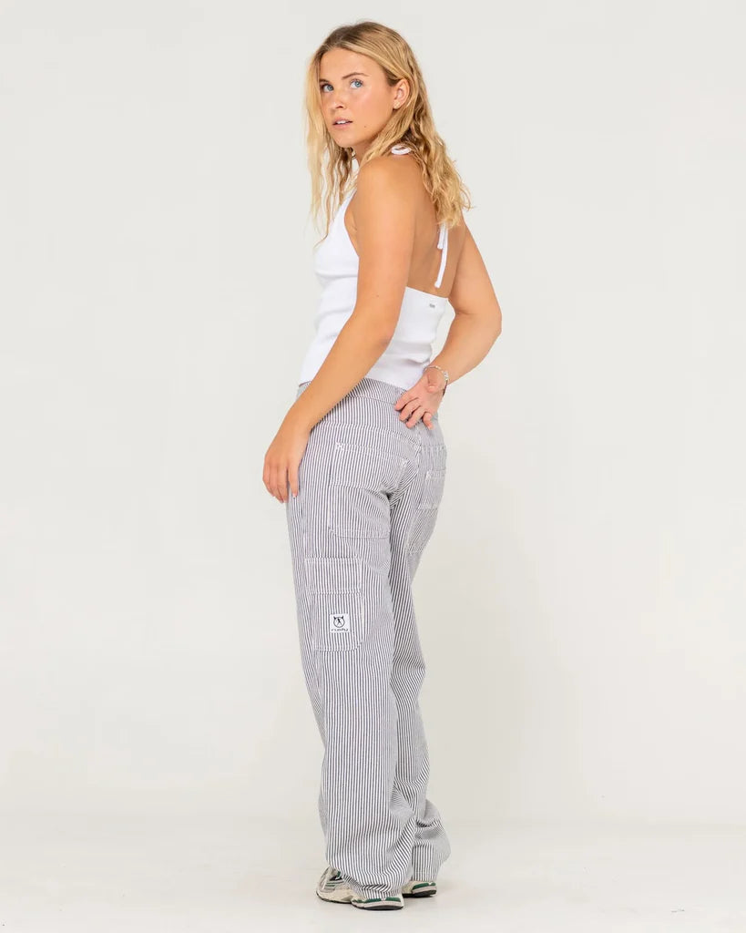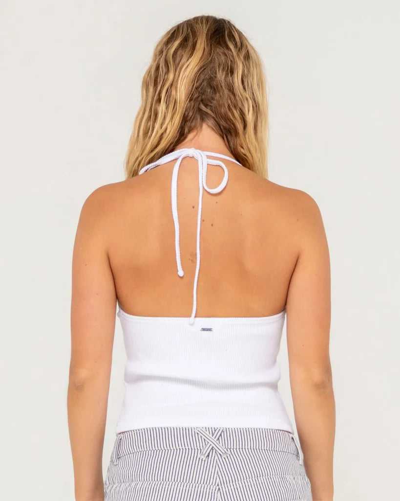 Slim Fit Skimmer Length Ribbed Tank With V Neckline And Cut Out Detal. Material: 95% Cotton 5% Spandex Striped Rib Jersey