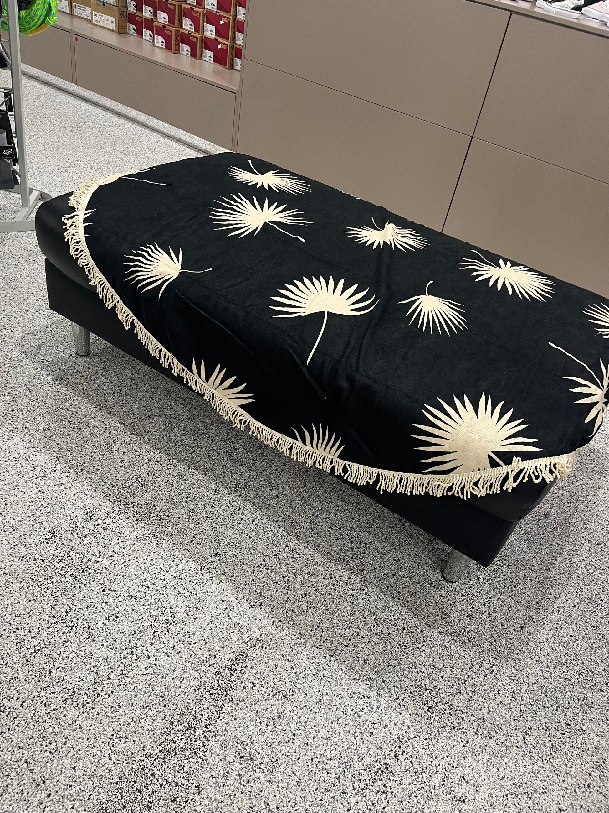 Calling all beach lovers! The Beach Blanket is a must-have for your next seaside adventure. Crafted from 100% cotton terry, it offers a soft and cozy feel that will make you feel like you're on cloud nine. Measuring 65” (165cm) in diameter, it provides plenty of space for relaxation and unwinding. Though it's not all about comfort, the towel is also adorned with elegant tassels and an embroidered logo, adding a touch of sophistication that will elevate your beach ensemble. Get ready to lounge in style with the Beach Blanket.